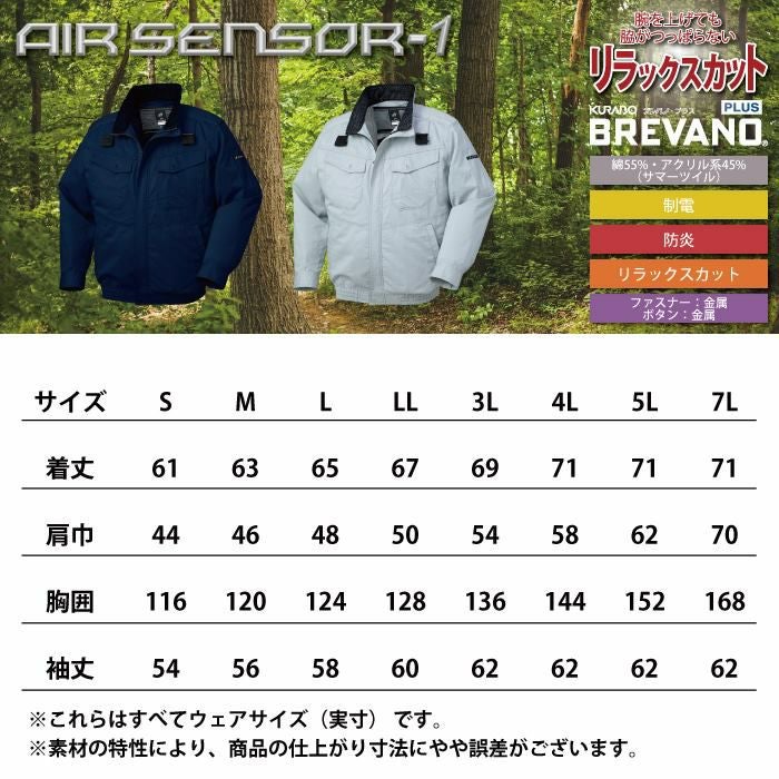作業着 空調服 電動ファン 熱中症 ファン付きウェア (服のみ) クロダルマ 作業服 258601 空調エアセンサー対応長袖ジャンパー 7L 春夏用