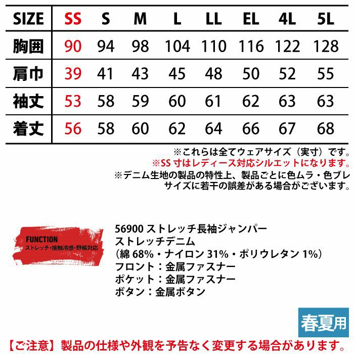 自重堂 作業服 作業着 作業ズボン 自重堂 作業服 56900 ストレッチ長袖ジャンパー 4L-5L 春夏用 作業着