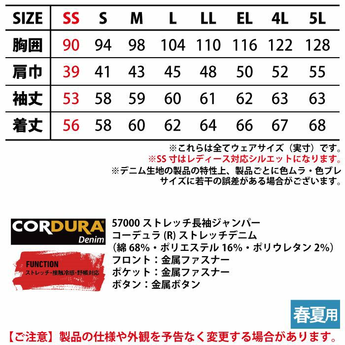 自重堂 作業服 作業着 作業ズボン 自重堂 作業服 57000 ストレッチ長袖ジャンパー 4L-5L 春夏用 作業着