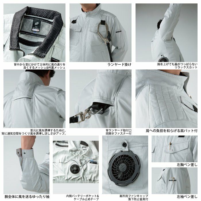 作業着 空調服 電動ファン 熱中症 ファン付きウェア (服のみ) クロダルマ 作業服 258671 ハーネス対応長袖ジャンパー S-5L 春夏用
