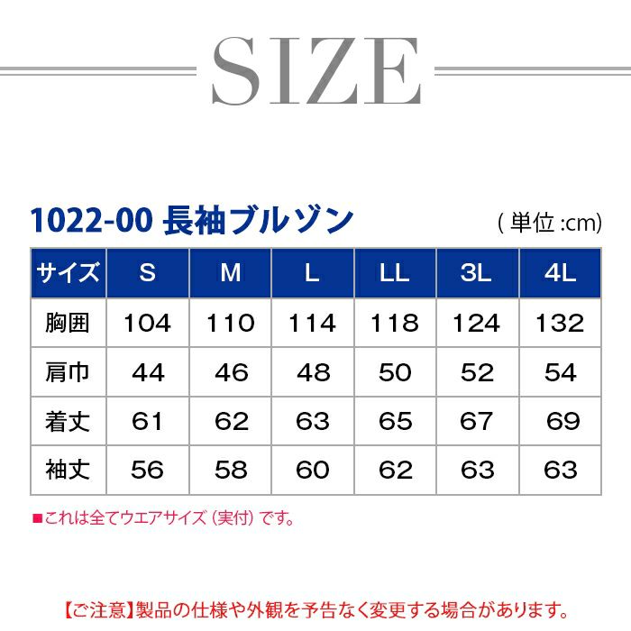 桑和 SOWA 作業服 作業着 作業ズボン 桑和 SOWA 作業服 1022-00 長袖ブルゾン 4L 作業服 秋冬用