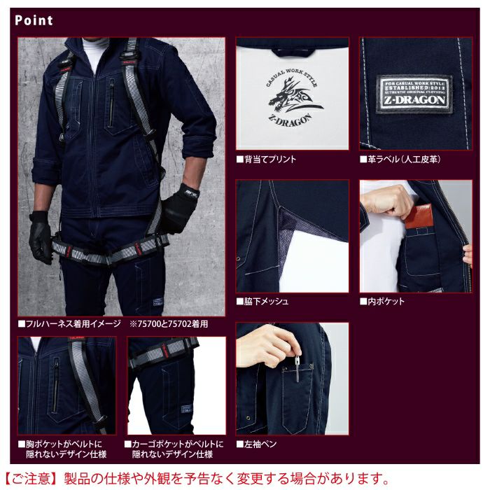 自重堂 Z-DRAGON 作業服 作業着 作業ズボン 自重堂 Z-DRAGON 作業服 75700 ストレッチ長袖ジャンパー S-LL 春夏用 作業着