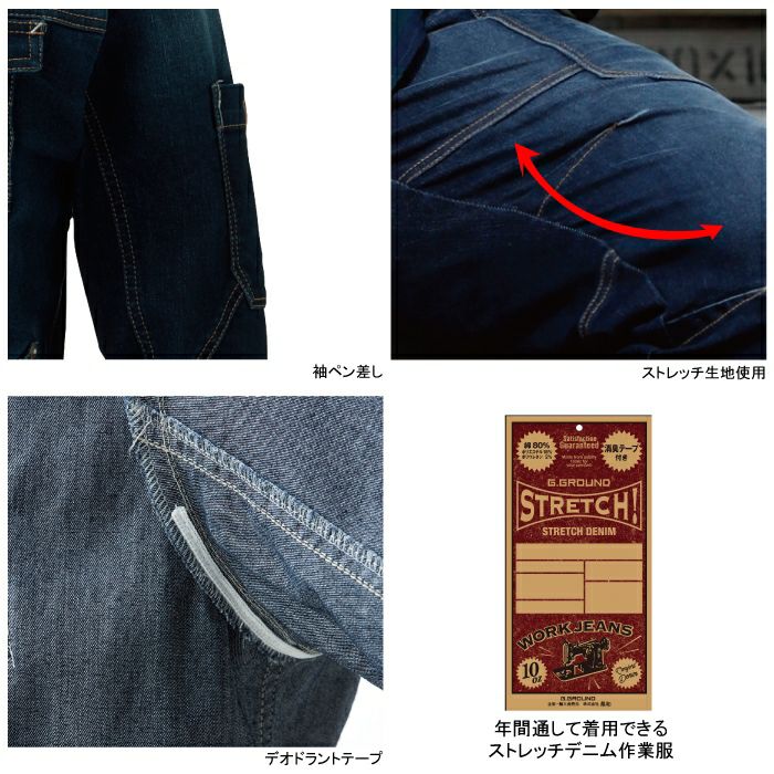 アイズフロンティア 作業服 作業着 作業ズボン アイズフロンティア 作業服 上下セット 7570D ジャケット と 7572D カーゴパンツ ストレッチ 3D デニム ライダース 春夏秋冬