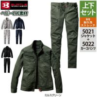 ユニセックス ストレッチ バートル BURTLE 作業着 上下セット 5021 ジャケットS-3L と 5022 カーゴパンツ SS-3L 作業ズボン 作業服 おしゃれ 秋冬