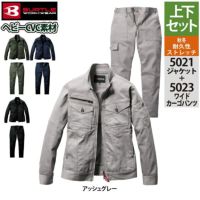 ユニセックス ストレッチ バートル BURTLE 作業着 上下セット 5021 ジャケットS-3L と 5023 ワイドカーゴパンツ S-3L 作業ズボン 作業服 おしゃれ 秋冬