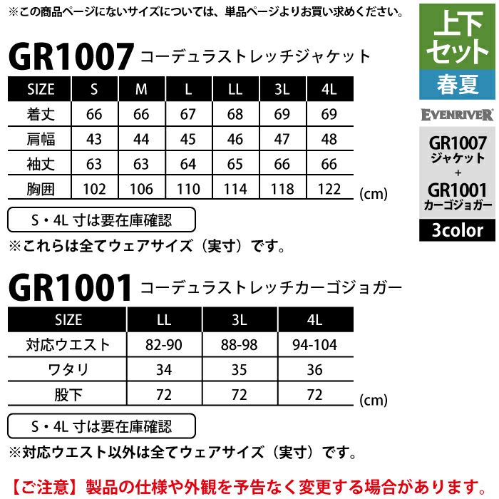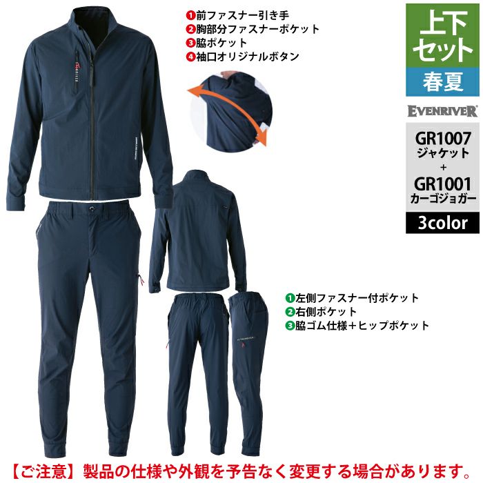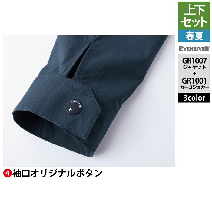 イーブンリバー 作業服 作業着 上下セット イーブンリバー EVENRIVER 作業服 上下セット GR1007 コーデュラストレッチジャケットS-3L と GR1001 コーデュラストッレッチカーゴジョガー S-3L 春夏