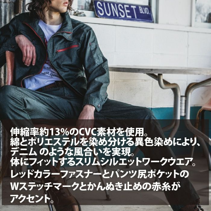 ユニセックス ストレッチ バートル BURTLE 作業着 2024秋冬新作 5001 ジャケット S-LL タフ スリム 作業服 おしゃれ デニム