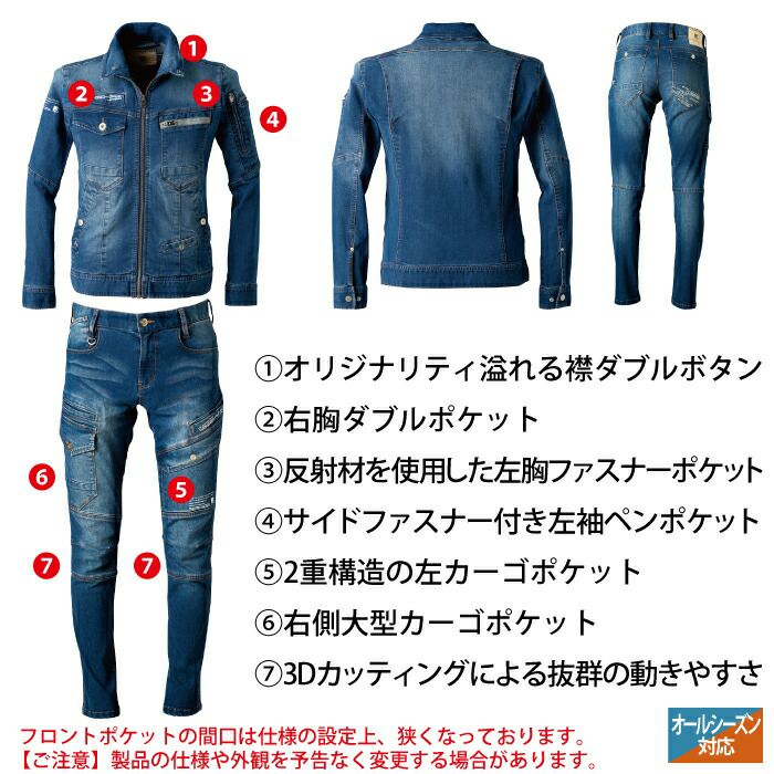アイズフロンティア 作業服 作業着 作業ズボン アイズフロンティア 作業服 限定モデル 7340S 巨匠加工 ストレッチ3Dデニムジャケット 春夏秋冬 超ハイレベル 熟練工 衿ワイヤー