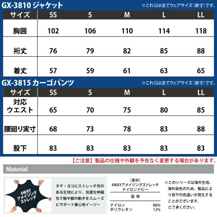作業服 秋冬用 コーコス 上下セット GX-3810 4WAYストレッチジャケットSS-LL と GX-3815 4WAYストレッチカーゴパンツ SS-LL 作業着 作業ズボン