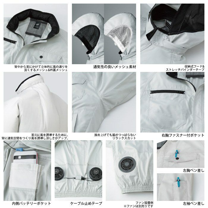 作業着 空調服 電動ファン 熱中症 ファン付きウェア (服のみ) クロダルマ 作業服 258611 空調エアセンサー対応長袖ジャンパー M-5L 春夏用
