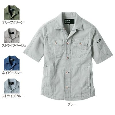 ●関連商品※2254長袖ブルゾン※2255ハーフパンツ※2256カーゴパンツ※2259ジョガーパンツ●春夏用●素材:ストレッチサッカー 綿95%・ポリウレタン5%、金属ファスナー、金属ボタン(ドットボタン)●伸縮素材、洗い加工、見た目も涼しいサッカー素材、左胸ポケット(巾11cm×深さ16cm)・左右胸ポケット(巾10cm×深さ10.5cm)●サイズ:S(肩巾/44、胸囲/102、袖丈/23.5、着丈/61)、M(肩巾/45.5、胸囲/105、袖丈/24.5、着丈/63)、L(肩巾/47、胸囲/108、袖丈/26、着丈/65)、LL(肩巾/48.5、胸囲/112、袖丈/27、着丈/67)、3L(肩巾/50、胸囲/116、袖丈/28、着丈/69)、4L(肩巾/51.5、胸囲/120、袖丈/29、着丈/71)、5L(肩巾/53、胸囲/124、袖丈/29、着丈/71)●カラー:ネイビーブルー、グレー、オリーブグリーン、ストライプベージュ、ストライプブルー