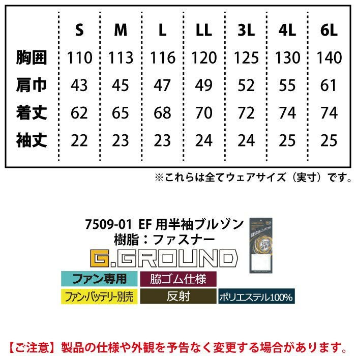 桑和 SOWA 作業服 7509-01 EF半袖ブルゾン S-LL 作業服 春夏用