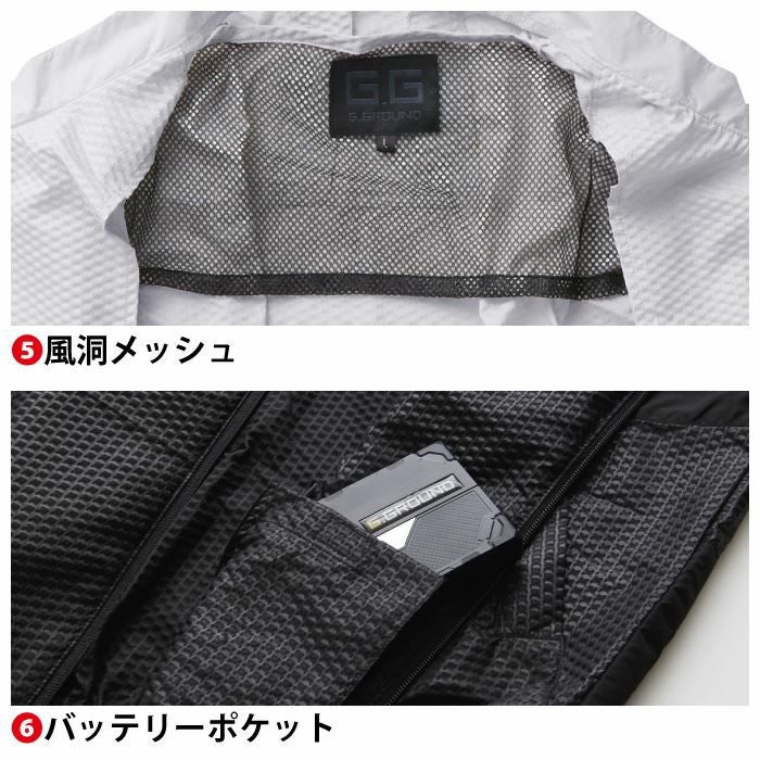 ●関連商品※7509-06用ベスト●春夏用●混率:ポリエステル100%、樹脂ファスナー●軽量素材を使用したストレスフリーな着心地、爽やかな接触感のエンボス加工●サイズ:S、M、L、LL、3L、4L、6L●カラー:ブラック、シルバーグレー