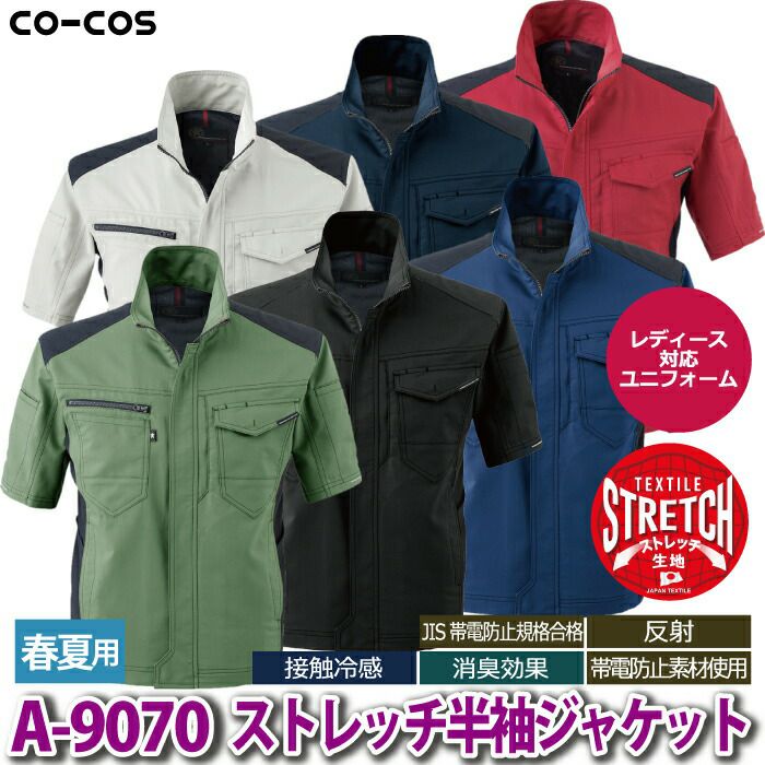 コーコス 作業服 作業着 作業ズボン コーコス 作業服 春夏用 A-9070 ストレッチ半袖ジャケット 3L