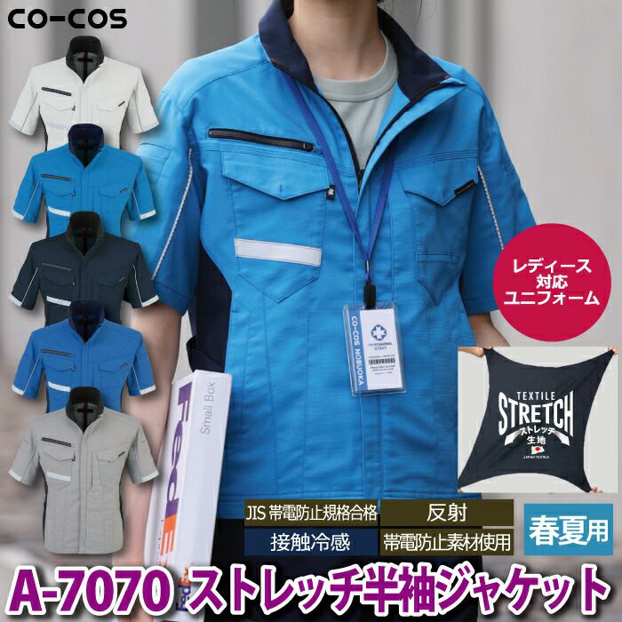 コーコス 作業服 作業着 作業ズボン コーコス 作業服 春夏用 A-7070 ストレッチ半袖ジャケット 3L