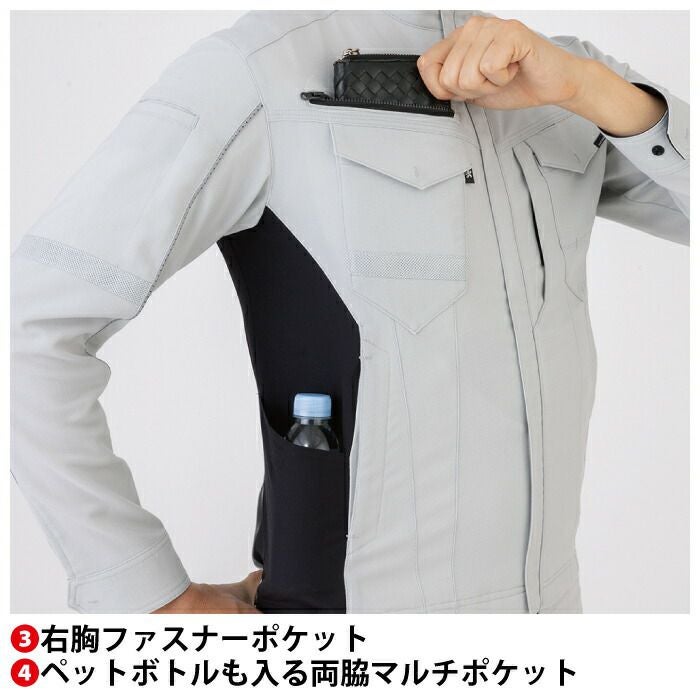 ◇機能:野帳も入る左胸縦ポケット・両袖マルチポケット・反射素材(右胸・両袖)・右胸ファスナーポケット・ペットボトルも入る両脇マルチポケット・タブレットも入る左内ポケット(10.1インチまで)・帯なし仕様・サイドベンツアジャスター・11ヶ所の大容量ポケット・JIS帯電防止規格合格・帯電防止素材使用・ストレッチ・接触冷感・樹脂ドットボタン・樹脂ファスナー