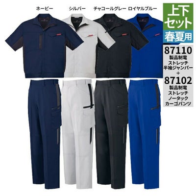 自重堂 作業服 上下セット 87110 半袖ジャンパー と 87102 ノータックカーゴパンツ SS-LL ズボン 春夏用 かっこいい おしゃれ ズボン 作業着