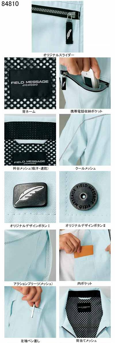 作業服 作業着 自重堂 作業服 84810 吸汗・速乾半袖ジャンパー S-LL 春夏用 作業着 メンズ ワークウェア jichodo かっこいい