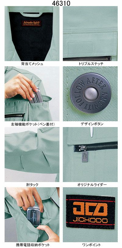 作業服 作業着 自重堂 作業服 46310 半袖ブルゾン S-LL 春夏用 作業着 メンズ ワークウェア jichodo かっこいい