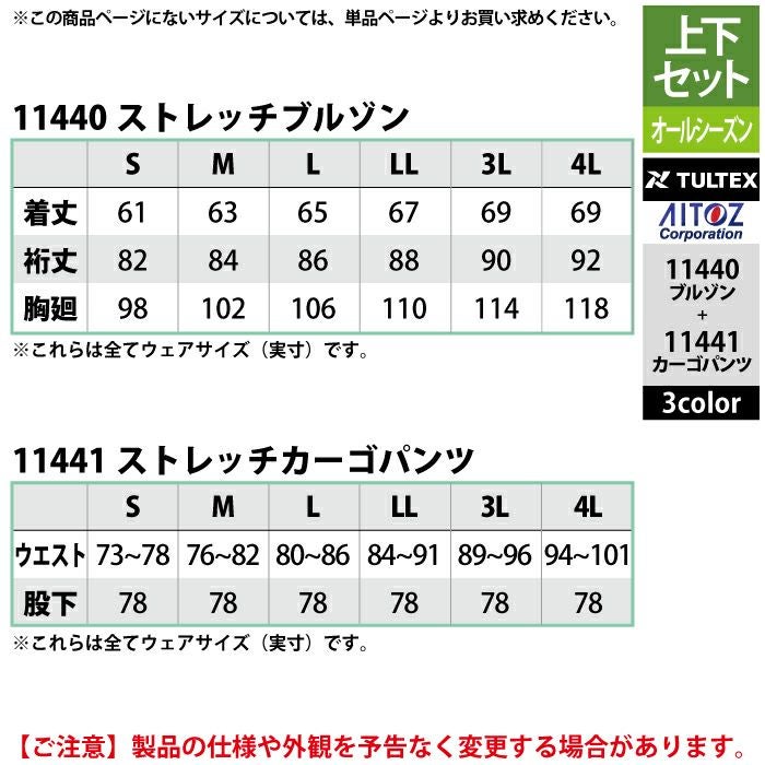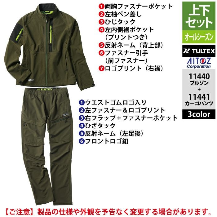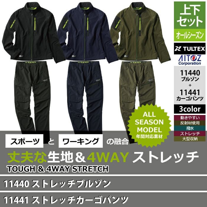 アイトス Aitoz 作業服 作業着 作業ズボン アイトス 作業服 作業着 Aitoz 上下セット 11440 ストレッチブルゾンS-3L と 11441 ストレッチカーゴパンツ S-3L 作業着 作業ズボン