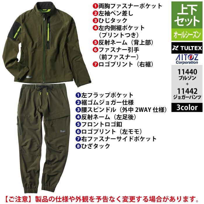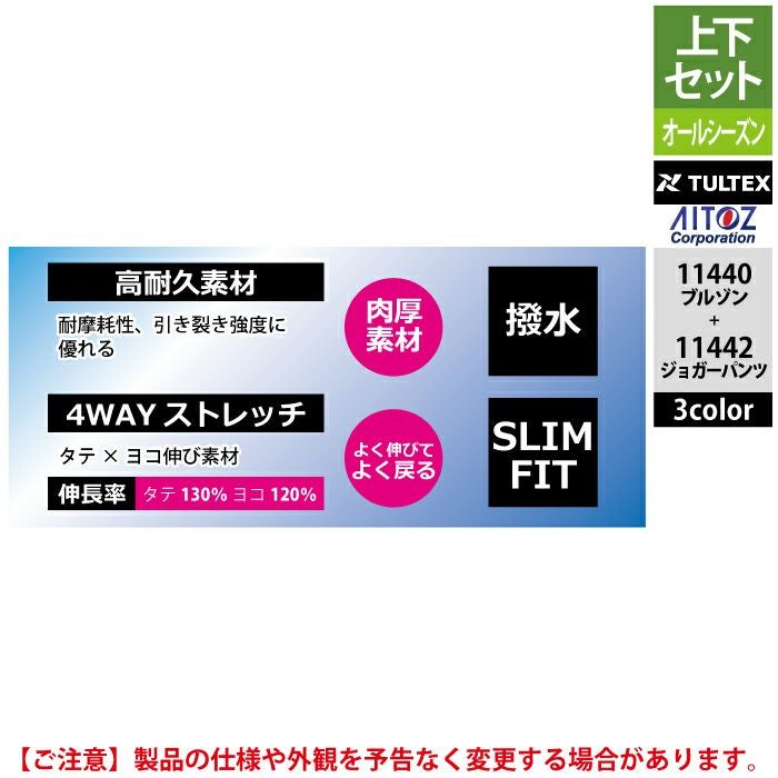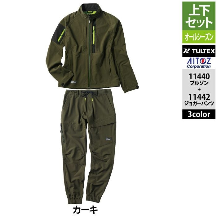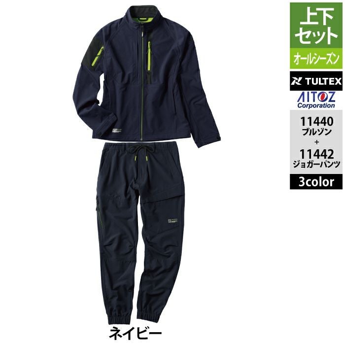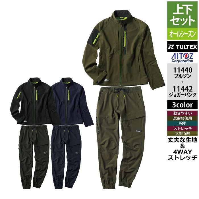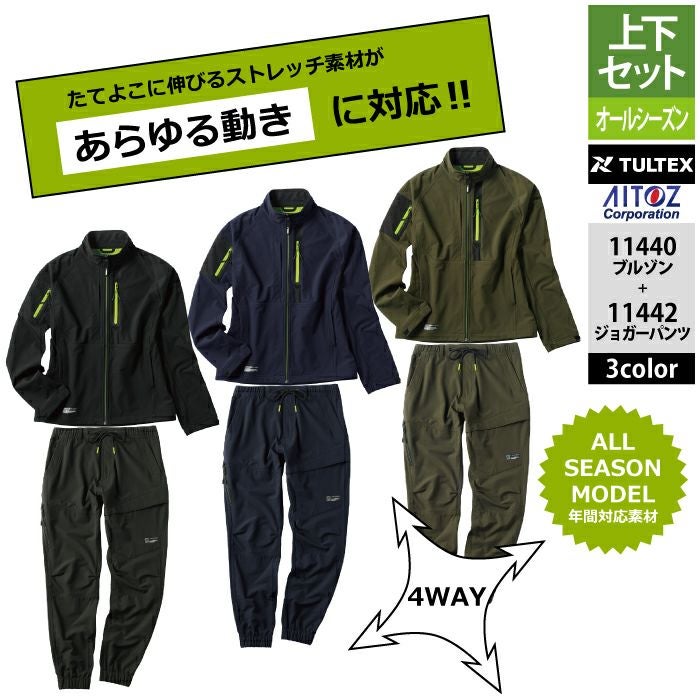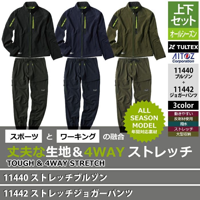 作業服 オールシーズン アイトス Aitoz 上下セット 11440 ストレッチブルゾンS-3L と 11442 ストレッチジョガーパンツ S-3L 作業着 作業ズボン