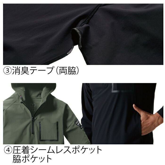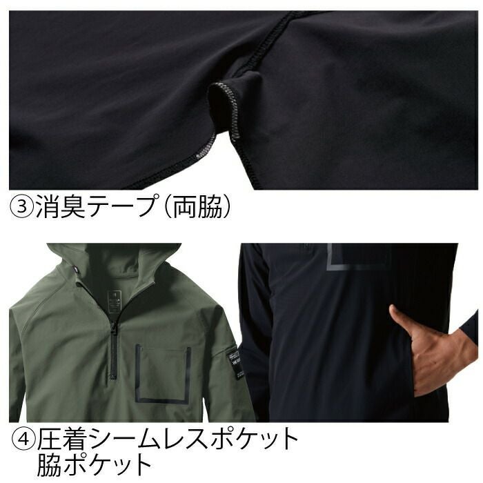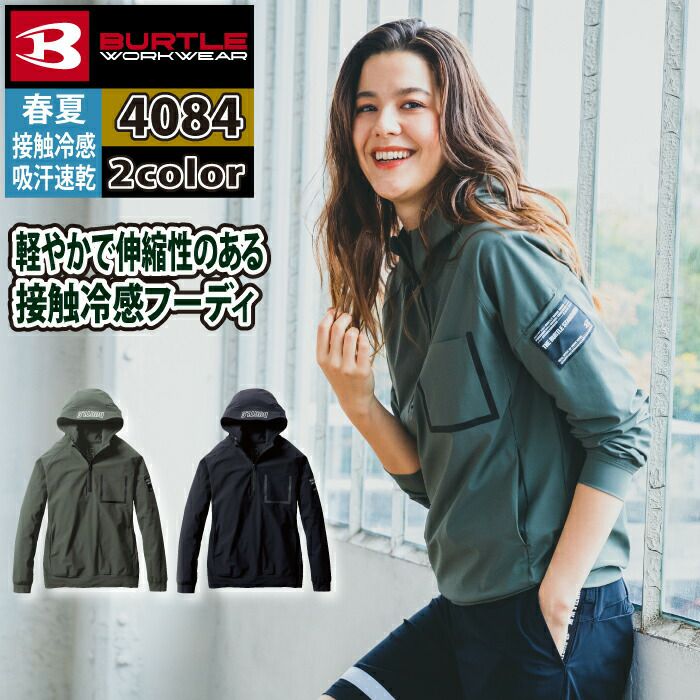 ユニセックス UV ストレッチ バートル BURTLE 作業着 2023春夏新作 4084 ハーフジップフーディ XXL 作業服 おしゃれ ドライ 冷感
