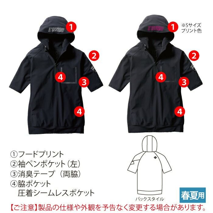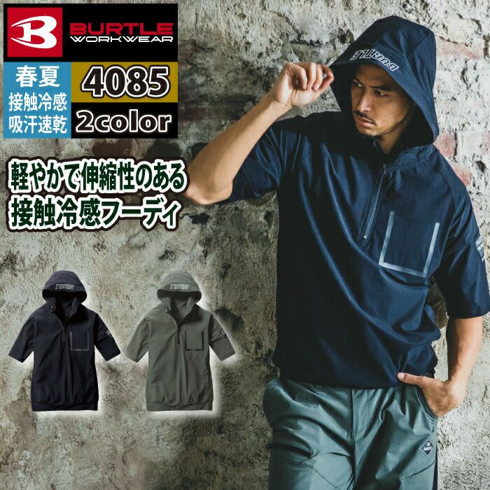 ユニセックス UV ストレッチ バートル BURTLE 作業着 4085 半袖ハーフジップフーディ XXL 作業服 おしゃれ ドライ 冷感