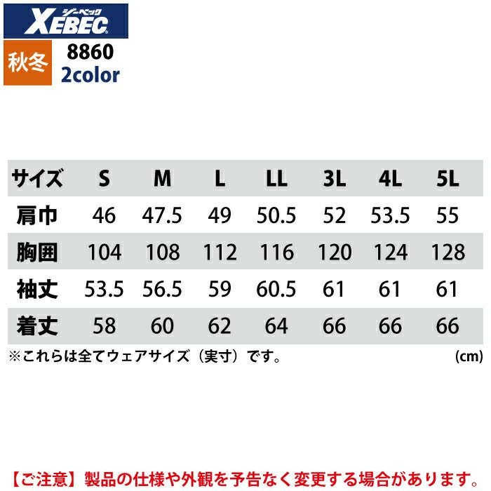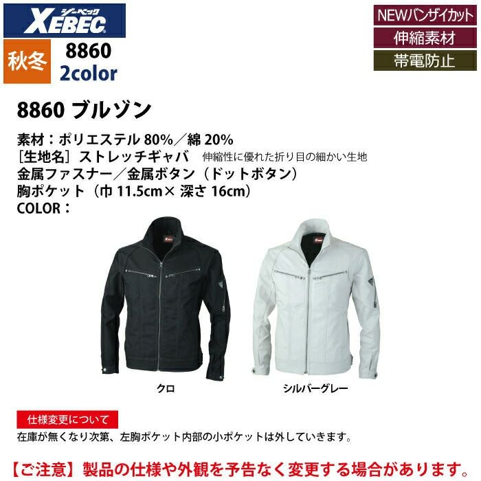ジーベック XEBEC 作業服 作業着 作業ズボン ジーベック XEBEC 作業服 秋冬用 8860 長袖ブルゾン S-5L 作業着