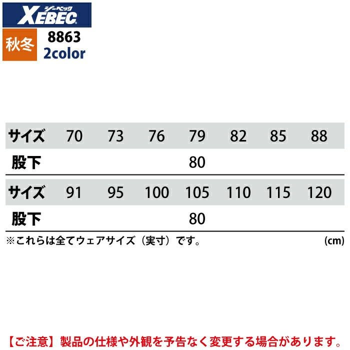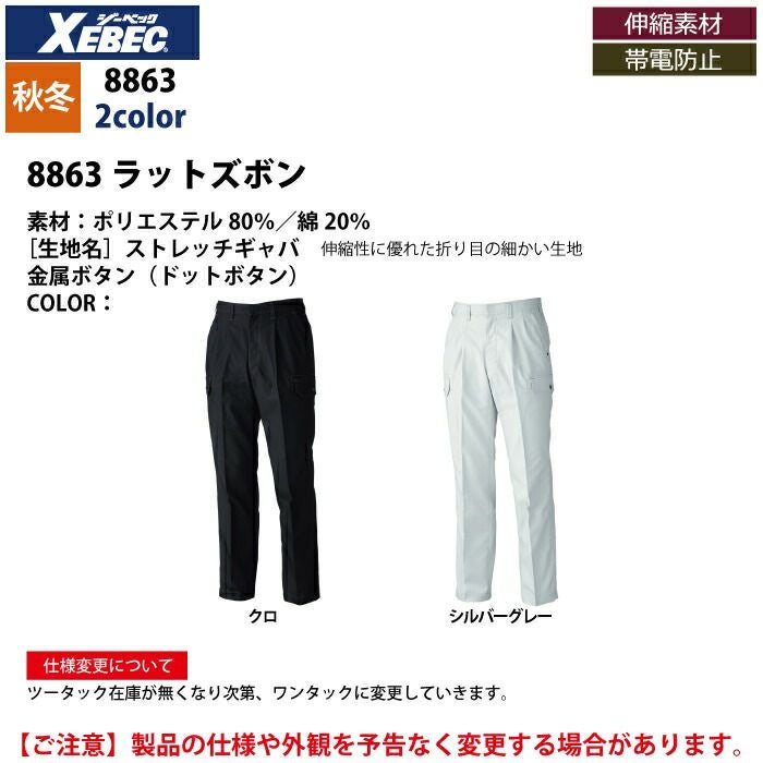 ジーベック XEBEC 作業服 作業着 作業ズボン ジーベック XEBEC 作業服 秋冬用 8863 ラットズボン 70-120 作業着