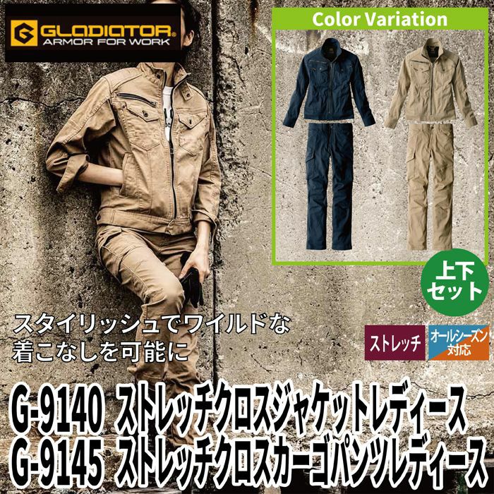 作業服 オールシーズン コーコス 上下セット G-9140 ストレッチクロスジャケットレディースS-L と G-9145 ストレッチクロスカーゴパンツレディース S-L 作業着 作業ズボン 女性用