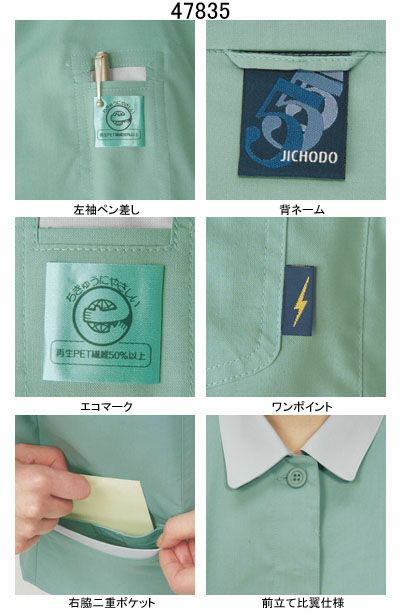 自重堂 作業服 47835 エコ5バリュー半袖スモック S-LL 春夏用 作業着 メンズ ワークウェア jichodo かっこいい