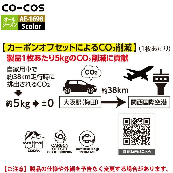 コーコス 作業服 春夏用 AE-1698 エコ長袖ポロシャツ 3L
