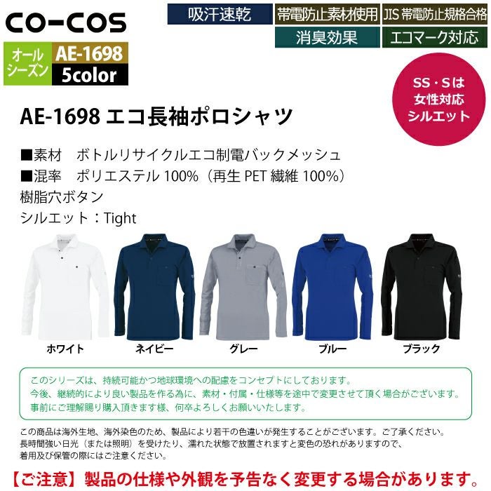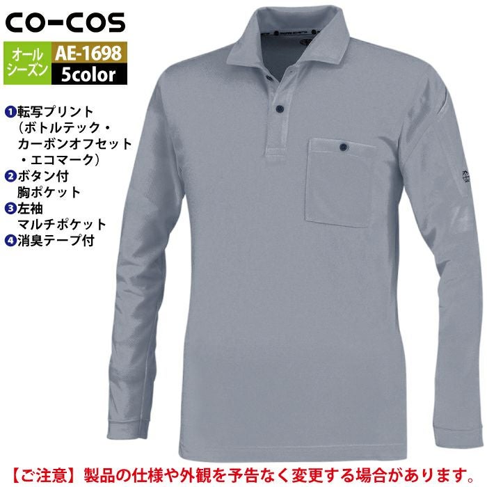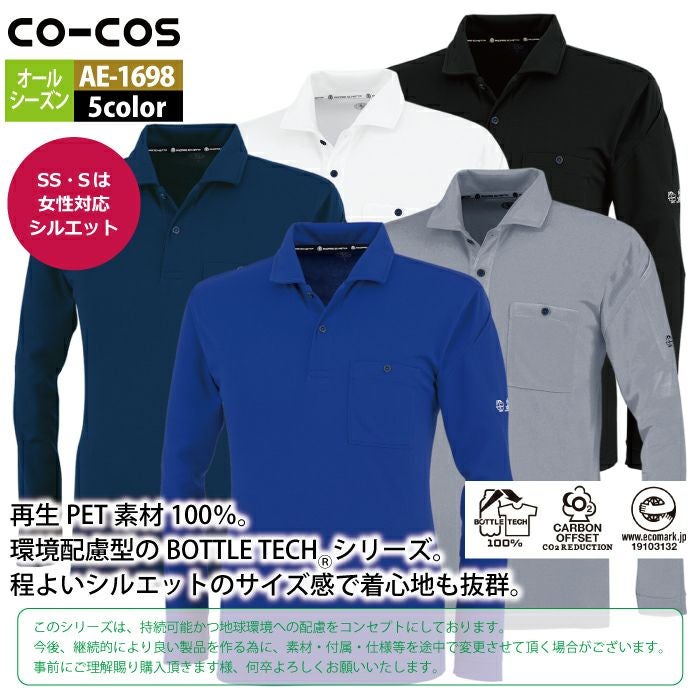 コーコス 作業服 春夏用 AE-1698 エコ長袖ポロシャツ 4L-5L