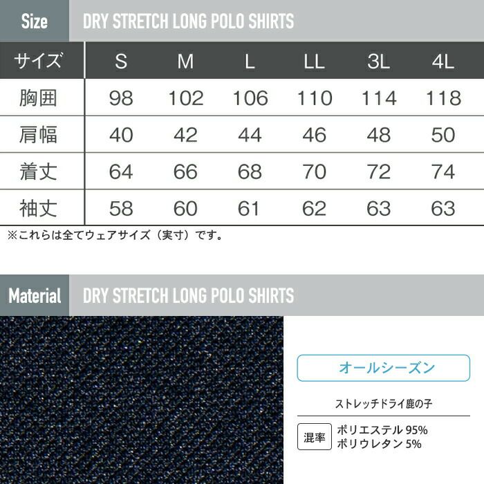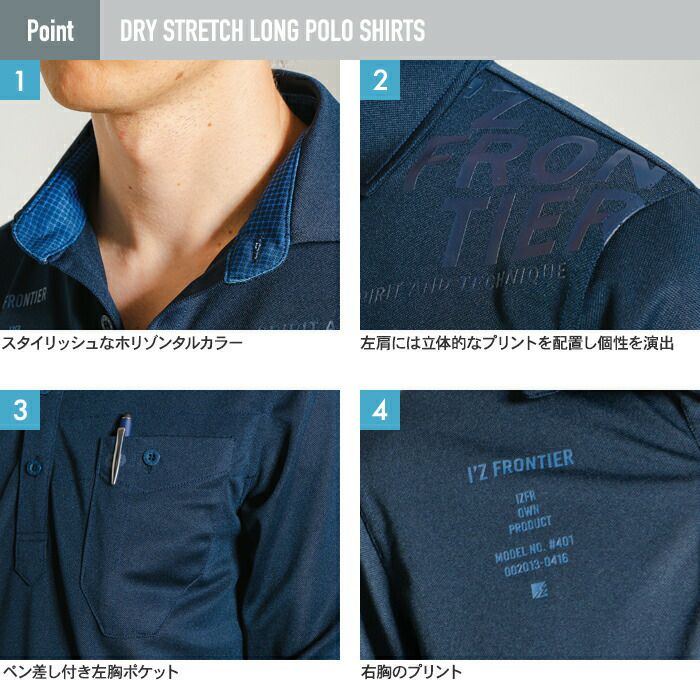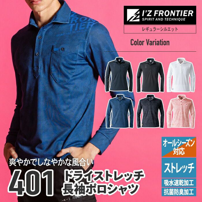 アイズフロンティア 作業服 作業着 作業ズボン アイズフロンティア 作業服 インナー 401 ドライストレッチ長袖ポロシャツ S-4L 春夏 作業着 おしゃれ シャツ