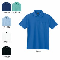 ●関連商品※85844長袖ポロシャツ●オールシーズン用●素材:鹿の子 ポリエステル65% 綿35%、ボタン/樹脂ボタン●消臭&抗菌テープ(両脇・両肩)●サイズ:SS(胸囲/88、肩幅/37、袖丈/18、着丈/58)、S(胸囲/92、肩幅/39、袖丈/19、着丈/60)、M(胸囲/98、肩幅/42、袖丈/21、着丈/66)、L(胸囲/102、肩幅/44、袖丈/22、着丈/68)、LL(胸囲/106、肩幅/46、袖丈/23、着丈/70)、EL(胸囲/110、肩幅/48、袖丈/23、着丈/72)、4L(胸囲/116、肩幅/51、袖丈/24、着丈/74)、5L(胸囲/124、肩幅/54、袖丈/25、着丈/76)●カラー:ブルー、ネービー、サックス、ホワイト、ブラック、エメラルド