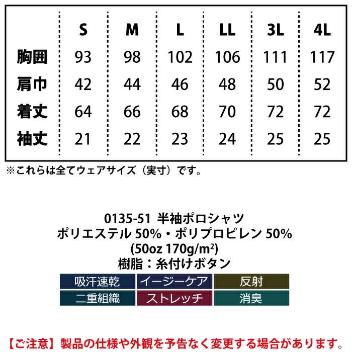 桑和 SOWA 作業服 作業着 作業ズボン 桑和 SOWA 作業服 オールシーズン 0135-51 半袖ポロシャツ S-3L