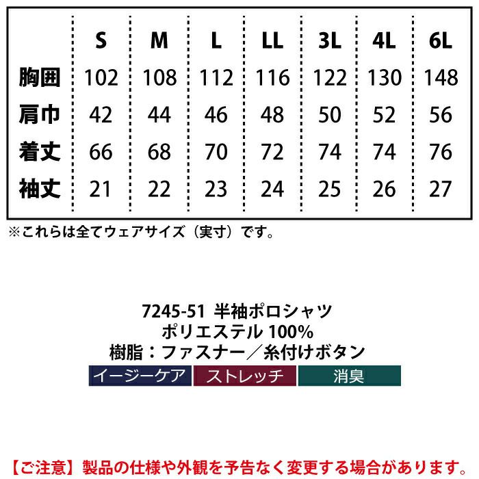 桑和 SOWA 作業服 作業着 作業ズボン 桑和 SOWA 作業服 春夏用 7245-51 半袖ポロシャツ 6L