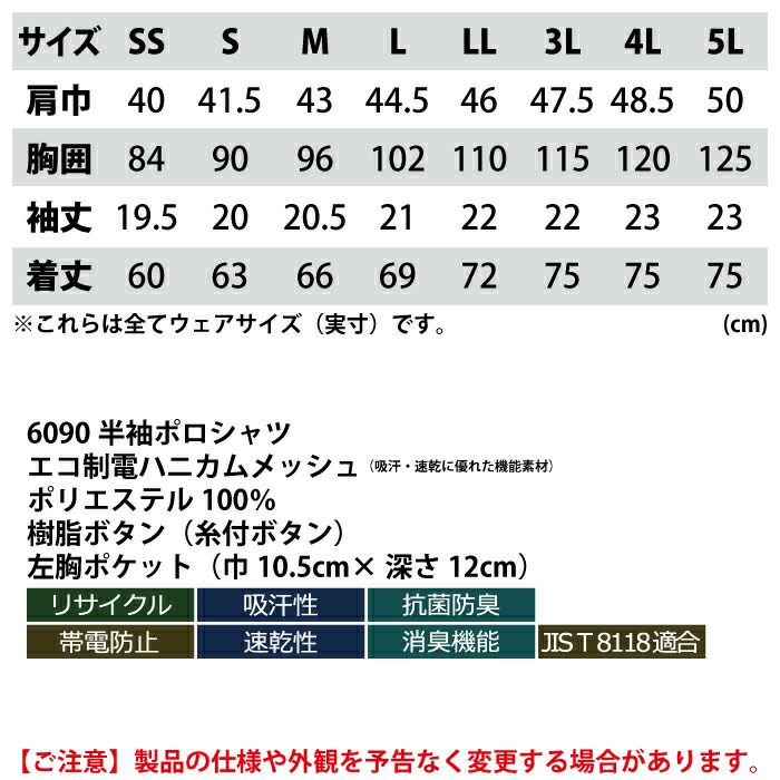 ジーベック XEBEC 作業服 作業着 作業ズボン ジーベック XEBEC 作業服 春夏用 6090 半袖ポロシャツ 4L-5L 作業着