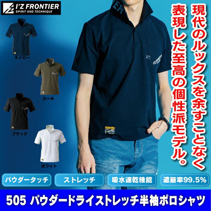アイズフロンティア 作業服 作業着 作業ズボン アイズフロンティア 作業服 インナー 505 パウダードライストレッチ半袖ポロシャツ S-4L 作業着 おしゃれ 春夏