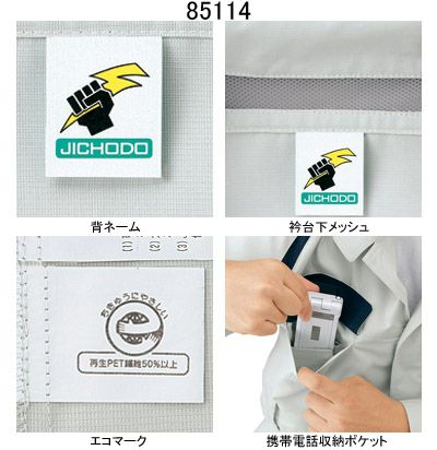 自重堂 作業服 85114 エコ製品制電半袖シャツ SS-LL 春夏用 作業着 メンズ ワークウェア jichodo かっこいい