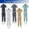 ●春夏用●素材:T/Cサマーツイル ポリエステル65%・綿35%、金属ファスナー、金属ボタン(ドットボタン)●帯電防止素材、プリーツロン、男女兼用、軽くて丈夫な夏素材、胸ポケット右(巾12.5cm×深さ20cm)・左(巾14cm×深さ14.5cm)●サイズ:SS(肩巾/42、胸囲/100、袖丈/23、着丈/65)、S(肩巾/44、胸囲/104、袖丈/24、着丈/68)、M(肩巾/46、胸囲/112、袖丈/25、着丈/75)、L(肩巾/48、胸囲/116、袖丈/25、着丈/78)、LL(肩巾/50、胸囲/120、袖丈/27、着丈/81)、3L(肩巾/52、胸囲/124、袖丈/27、着丈/84)、4L(肩巾/54、胸囲/128、袖丈/27、着丈/84)、5L(肩巾/56、胸囲/132、袖丈/27、着丈/84)●カラー:ディープネイビー、シルバーグレー、チャコールグレー、キャメル、ミストグリーン