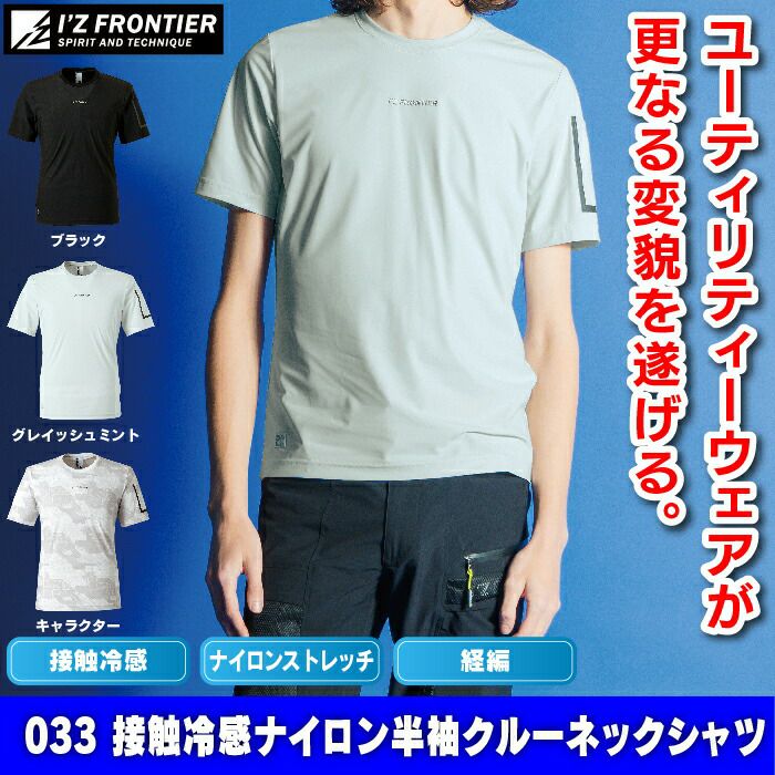 アイズフロンティア 作業服 作業着 作業ズボン アイズフロンティア 作業服 インナー 033 接触冷感ナイロン半袖クルーネックシャツ S-3L 作業着 おしゃれ 春夏