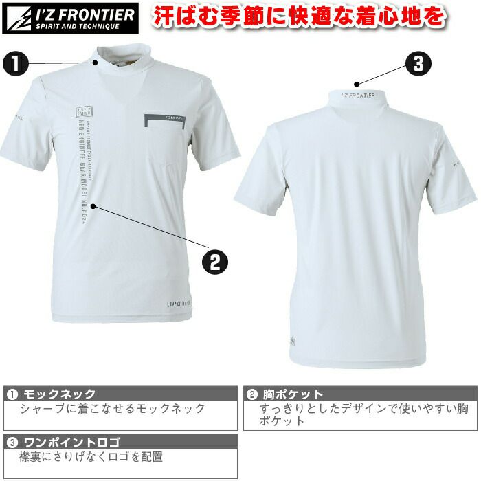 アイズフロンティア 作業服 作業着 作業ズボン アイズフロンティア 作業服 インナー 034 接触冷感ナイロン半袖モックネックシャツ S-3L 作業着 おしゃれ 春夏