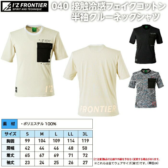 アイズフロンティア 作業服 作業着 作業ズボン アイズフロンティア 作業服 インナー 040 接触冷感フェイクコットン半袖クルーネックシャツ S-3L 作業着 おしゃれ 春夏