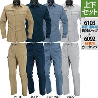 バートル BURTLE 作業着 上下セット 6103長袖シャツと6092カーゴパンツ SS-LL 作業服 おしゃれ 秋冬