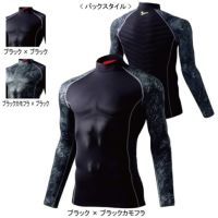 ●秋冬用●素材:裏起毛ストレッチ天竺●混率:ポリエステル88% ポリウレタン12% 中綿シンサレート60gキルト●吸湿発熱、吸汗・速乾、ストレッチ、消臭、抗菌、フラットシーマステッチ、消臭&抗菌テープ(両脇・両肩)、ロゴプリント、中綿キルティング、レッド裏起毛※背中面のみ●サイズ:S(胸囲/80、裄丈/71、着丈/64)、M(胸囲/86、裄丈/74、着丈/66)、L(胸囲/92、裄丈/77、着丈/68)、LL(胸囲/98、裄丈/80、着丈/70)、EL(胸囲/104、裄丈/83、着丈/72)●カラー:ブラック×ブラック、ブラック×ブラックカモフラ、ブラックカモフラ×ブラック