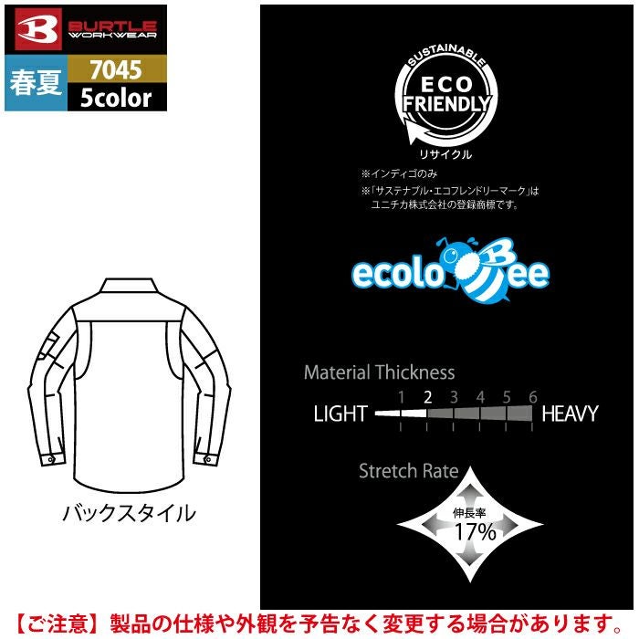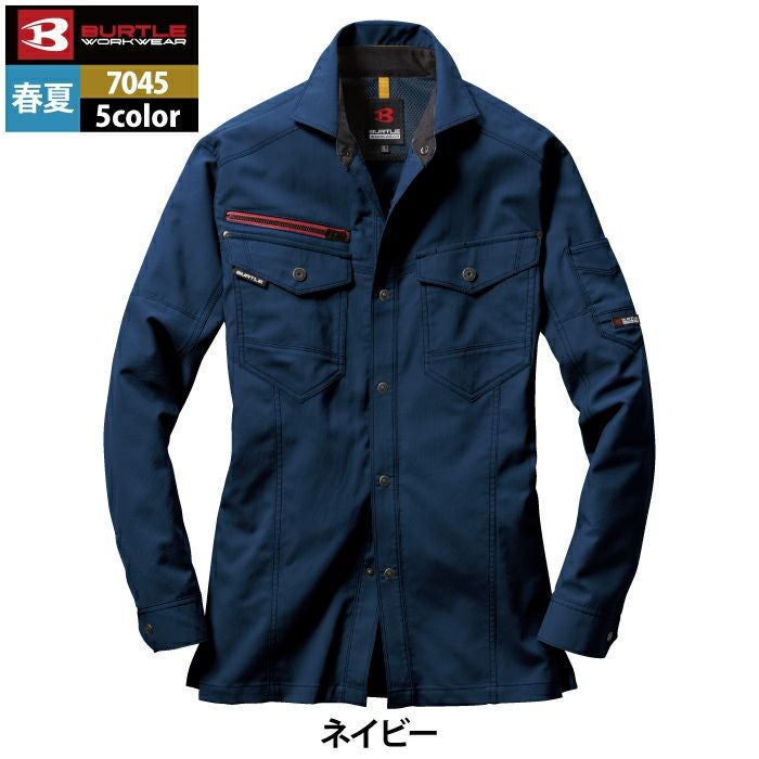 ストレッチ&テーパードシルエットの人気シリーズ バートル BURTLE 作業着 7045 長袖シャツ 3L 作業服 春夏用 ストレッチ 制電 ユニセックス ドライ テーパード