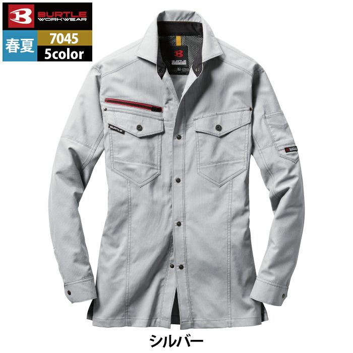 ストレッチ&テーパードシルエットの人気シリーズ バートル BURTLE 作業着 7045 長袖シャツ 5L 作業服 春夏用 ストレッチ 制電 ユニセックス ドライ テーパード