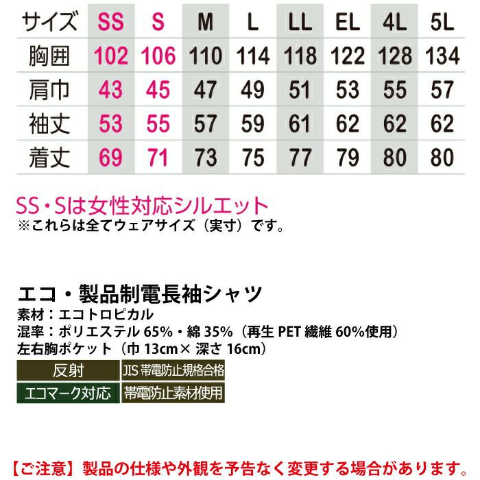 【A-8028 エコ製品制電長袖シャツ】
