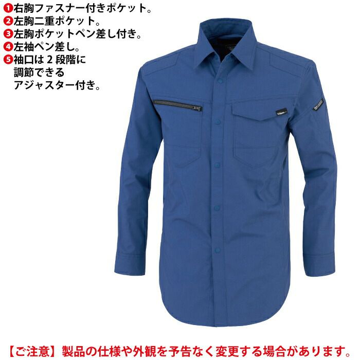 ◇機能:右胸ファスナー付きポケット。左胸二重ポケット。左胸ポケットペン差し付き。左袖ペン差し。